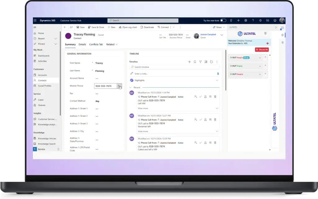 Connect Ultatel’s advanced cloud phone system with Microsoft Dynamics 365 to streamline every customer interaction and drive more revenue. With real-time calling and automatic data sync, your team can work faster, personalize every engagement, and focus on building stronger customer relationships—at scale.