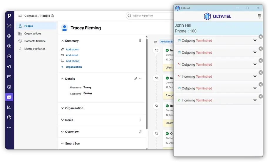 With the Ultatel-Pipedrive integration, a seamless connection is created between Ultatel’s cloud phone system and the Pipedrive CRM.Â