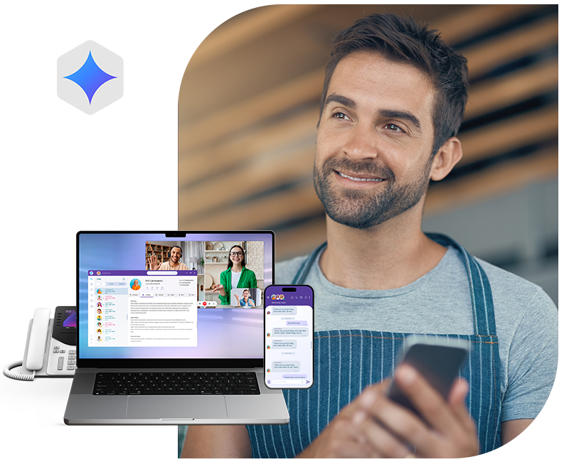 - Single mobile + desktop app for calls, SMS, voicemail